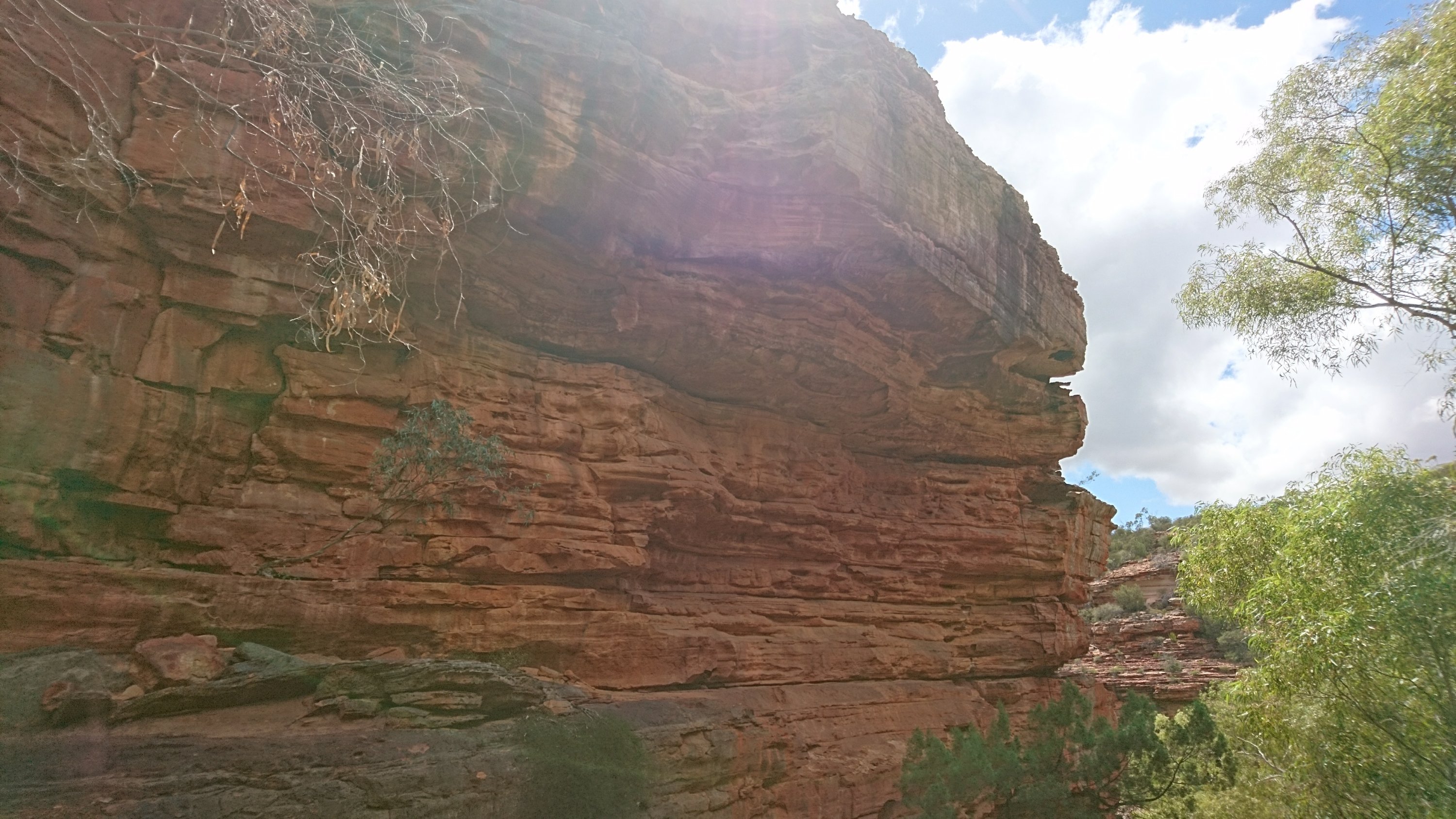 Nachdem alle gefrühstückt hatten und das Geschirr gemacht war (alles Gruppenarbeit) machten wir uns auf, um einen Canyon zu besuchen, auf welchem man durch ein natürlich geformtes Gesteinsfenster einen super Ausblick hatte. Fragt mich nicht mehr nach dem Namen. Jedenfalls waren wir aufgrund der Hitze und der vielen Fliegen so früh dort. Die Fliegen werden je später am Tag umso mehr. Ja, wieder lästige Fliegen, die einem ins Gesicht fliegen und hartnäckig dran bleiben. Ich hatte mich aber bereits daran gewöhnt und sah den anderen belustigt zu, wie sie versuchten die Fliegen loszuwerden 🙂