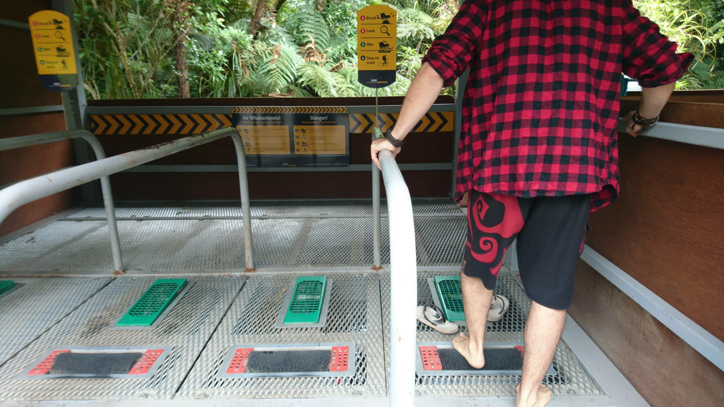 Da die Kauri Bäume sehr anfällig auf Keime sind, muss man zuerst sein Schuhwerk reinigen, bevor man den Tane Mahuta besuchen darf. Es erstaunte mich, dass dafür extra eine Schuhwaschanlage gebaut wurde. Aber die Neuseeländer versuchen ihre Natur so gut wie möglich zu schützen, was ich wiederum bewundere.