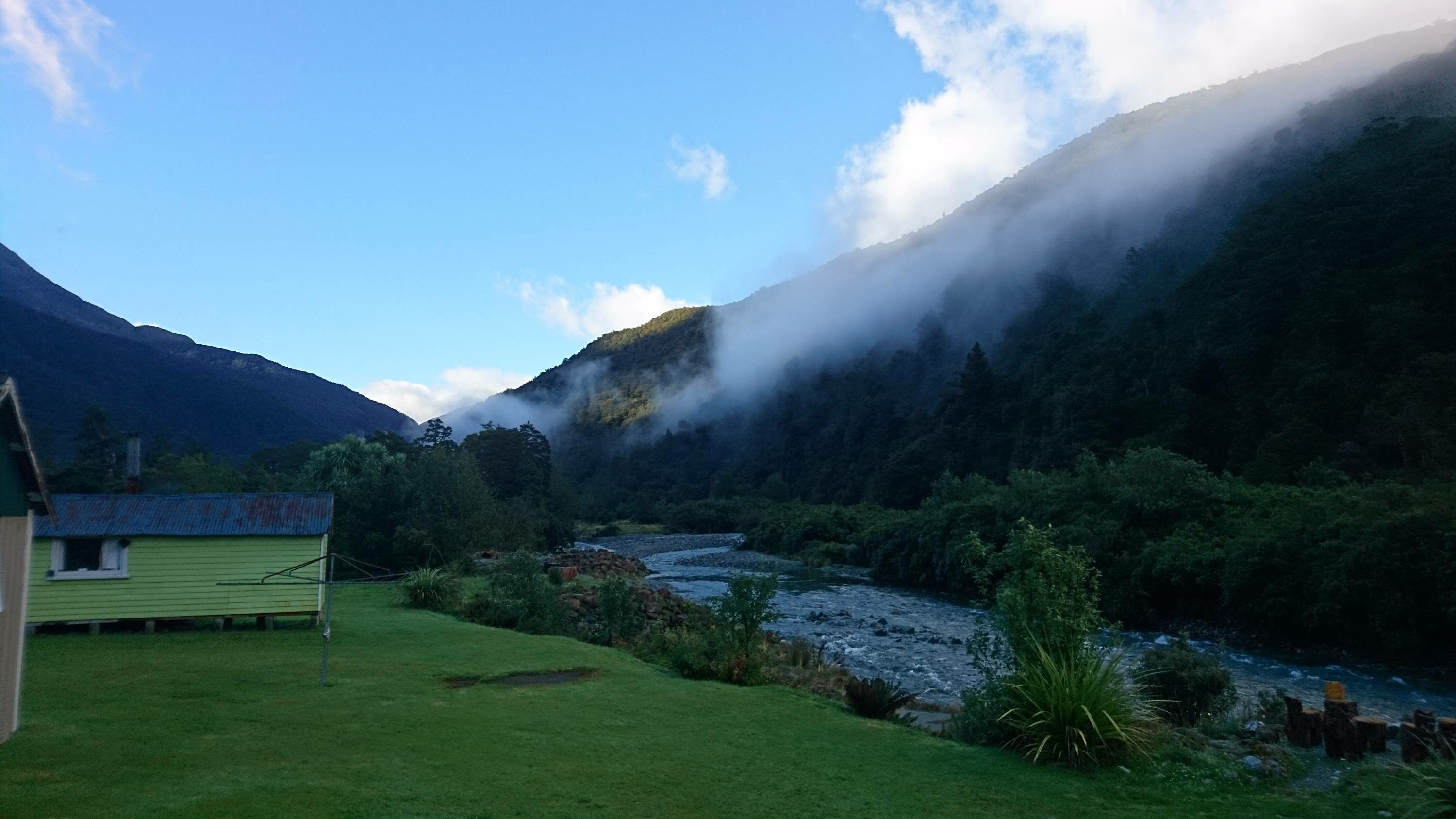 Nach 5 Stunden erreichten wir die Ostküste der Südinsel. Wir waren in einem Camp, an einem Platz namens Gunn Country. Abgelegen aller Zivilisation und ohne Mobilfunkempfang hiess es sich in der Guppe miteinander zu unterhalten. Heute war ein Neuseeländischer Feiertag und wir hatten die Aufgabe, uns typisch der jeweiligen Nation aus der man stammt, zu kleiden. Klar, ich hatte ja sicher ein typisches Schweizer Kleidungsstück dabei. Leider war kein Schwingerhemd in meinem Backpack! In Dunedin hatte ich dafür einen roten Hut gekauft und ein weisses Kreuz darauf gemalt. Es wurde ein lustiger Abend, auch ohne mit der Welt online zu sein.