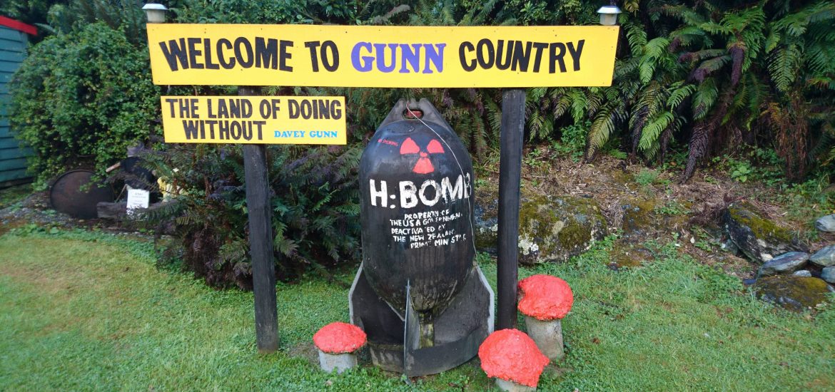 Der heutige Tag bestand aus viel Busfahren. Wir durchquerten auf unserem Weg von der Ostküste an die Westküste Neuseelands diverse Aussichtspunkte und fuhren unter anderem von der Ortschaft Clinton nach Gore, zwei ehemalige Präsidentschaftskanditaten der USA 🙂 Der Ort Gore preist sich selbst als Welthauptstadt der Braunforellen Fischerei an. So erstaunt es nicht, dass man am Ortseingang mit einer riesigen Forellenstatue empfangen wird.