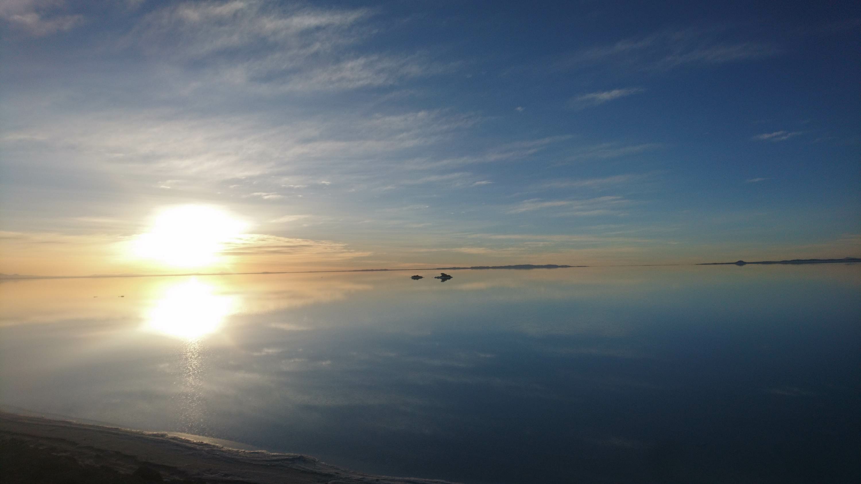 Just zum Sonnenaufgang erreichten wir unser Ziel. Die Salar stand noch unter Wasser und es war ungewiss, ob wir diese durchqueren konnten oder aussen rum fahren mussten. In den Monaten Januar, Februar, März und teils April kann aufgrund des hohen Wasserspiegels die Salzwüste nicht durchfahren werden. Die Zeichen standen nicht schlecht, sahen wir doch Jeeps anderer Agenturen bereits auf der anderen Seite des Wassers. Schlussendlich mussten die Fahrer die Lage beurteilen und entscheiden. Denn wenn man stecken bleibt hat man richtig ein Problem! Wir sahen sogar mit eigenen Augen was die bedeuten könnte! Ein Jeep einer anderen Agentur bliebt stecken!