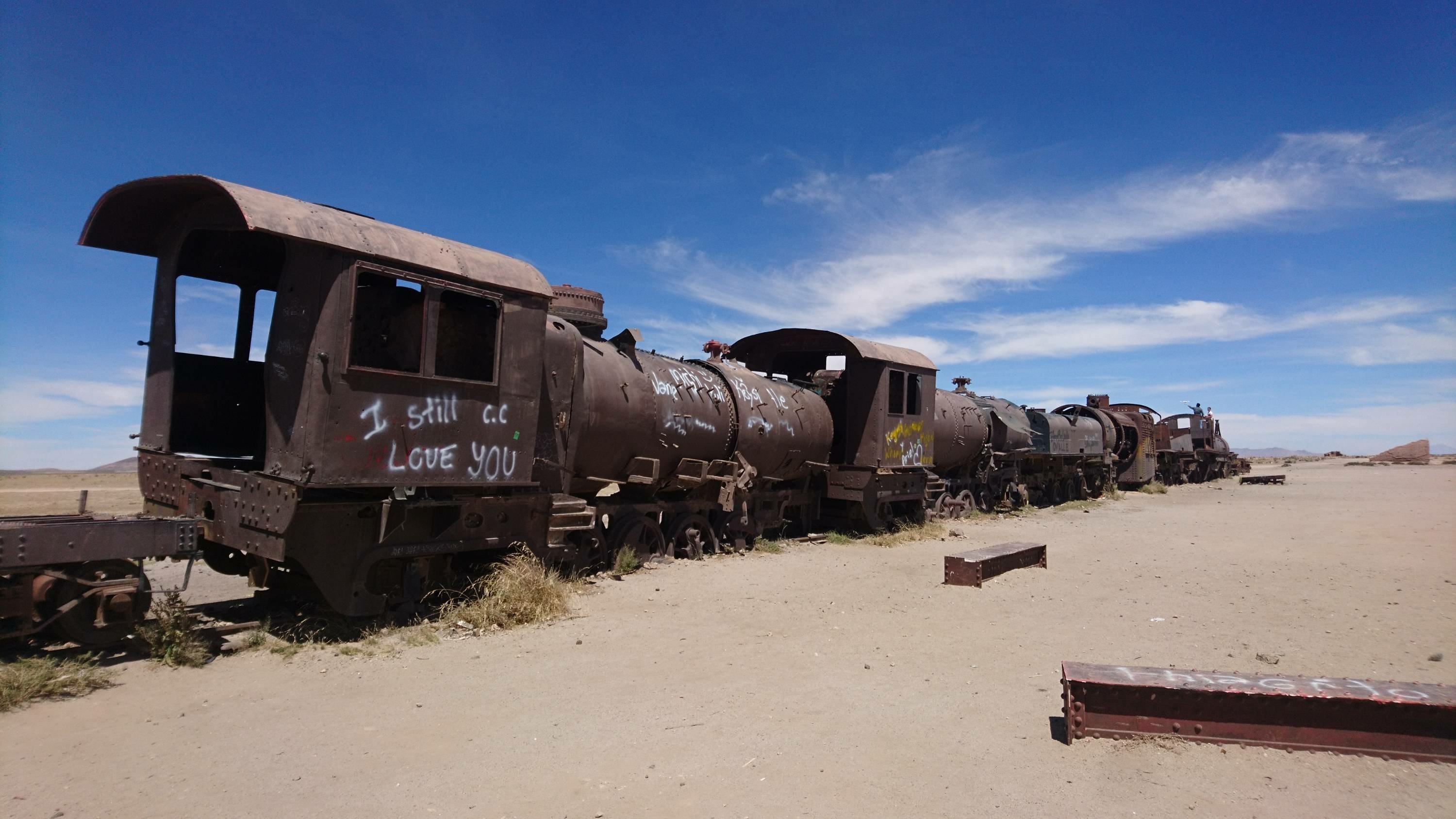 Die Tour war noch nicht zu Ende. Als nächsten besuchten wir den „Zugfriedhof“. Ein verwahrloster ehemaliger Zug, der heute noch vor sich hin rostet und mittlerweile zur Touristenattraktion geworden ist. Zugegeben es sah schon speziell aus.