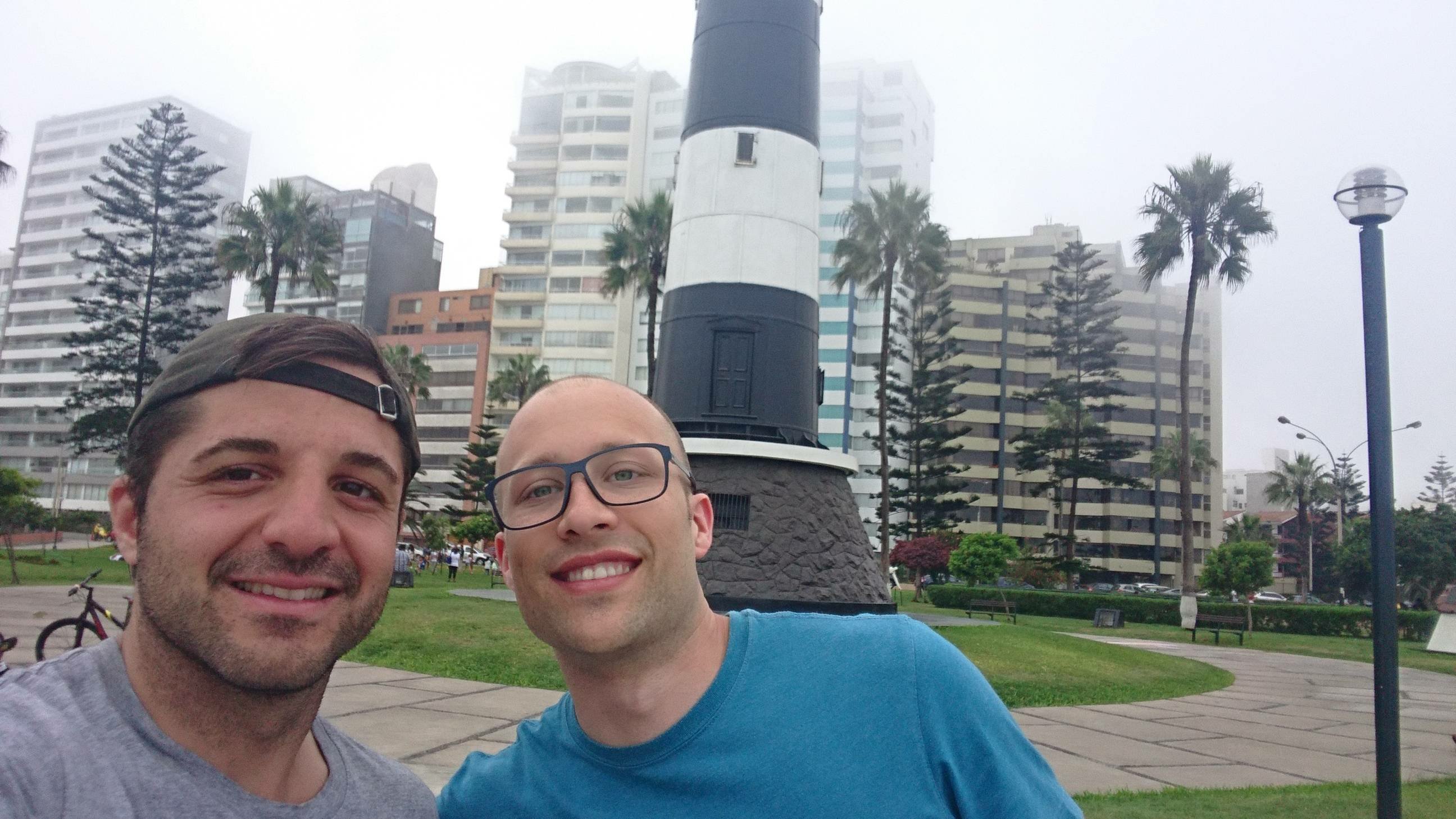 Am nächsten Tag erkundeten wir Lima gemeinsam. Wir liefen der berühmten Klippe entlang des Meeres. Leider war das Wetter, wenn auch nicht kalt, nicht so schön. Nichtsdestotrotz gefiel mir die Promenade bis zum Leuchtturm sehr gut. Ich fand es noch ziemlich speziell, ein Leuchtturm mit Hochhäuser im Hintergrund sieht man auch nicht alle Tage.