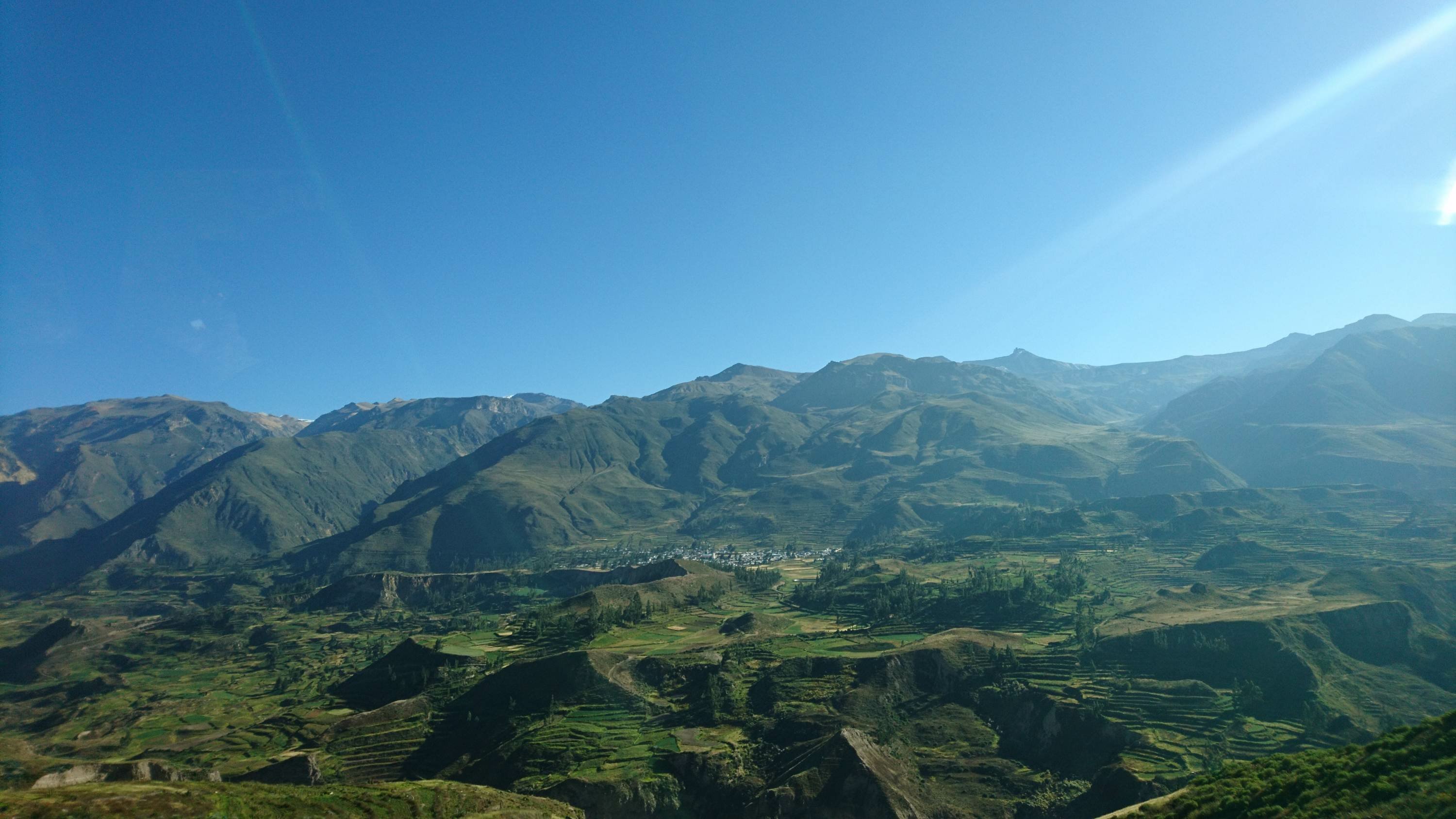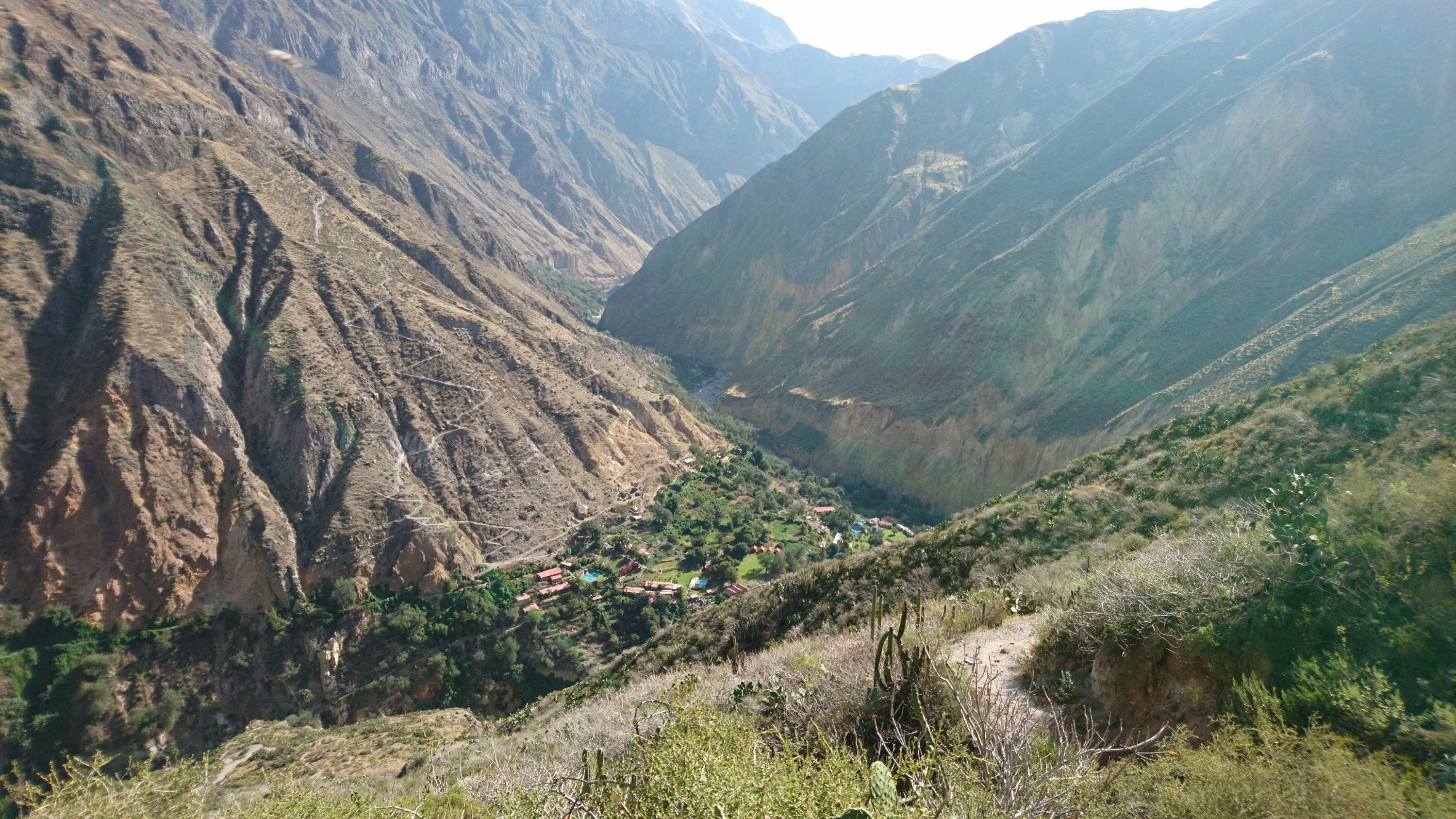 Ich habe bereits viele verschiedene Landschaften gesehen, doch der Colca Canyon war wieder etwas ganz neues. Bei unserem ersten Stopp, dem Kondor Aussichtspunkt, war das Ausmass dieser Schlucht zu sehen. Wir beobachteten an dieser Stelle, den nach seiner Spannweite gemessen, zweitgrössten Vogel der Welt. Die Spannweite eines Andenkondors kann bis zu 3 Metern betragen! Ich bin ja nicht besonders Vogel interessiert, aber die Kondore bei ihrem graziösen Gleitflug über die Schlucht beobachten zu können, war schon speziell. Leider ist es fast unmöglich diese Tiere mit einer Handykamera zu fotografieren.